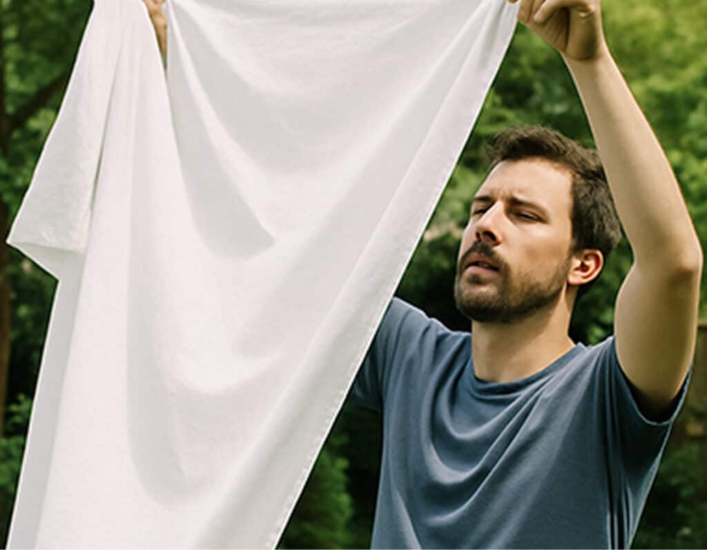 Grâce au combo lavage + séchage en séchoir + repassage, notre linge est garanti débarassé de 99,9% des virus et bactéries.